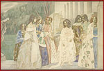 Евгения Илюхина: Это девушки, смотрящие на грозу. Еще одной темой (она у нас здесь не присутствует) были панно - опыты Ломоносова с электричеством, которые он демонстрирует Екатерине Второй. Естественно, заказчики как-то смотрели несколько по иному на электричество. Поэтому их это, конечно, совершенно не удовлетворило. Сохранились только эскизы.